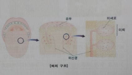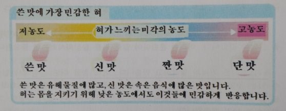 1. 음식의 맛은 혀의 표면에 분포하고 있는 미뢰가 감지합니다만, 그 정보가 대뇌의 미각영역에 보내져 비로소 맛을 느낍니다.