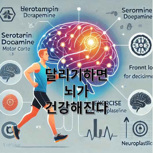 뇌의 특정 영역(해마, 전두엽, 운동 피질)과 운동의 효과(세로토닌, 도파민, 신경가소성)을 연결.