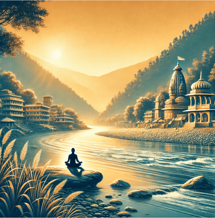 리쉬케시의 명상 명소를 시각적으로 표현한 이미지입니다.